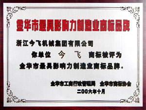 金华市最具影响力制造业商标品牌