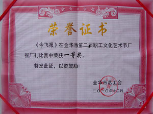 金华市第二届职工文化艺术节厂报刊一等奖