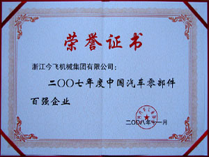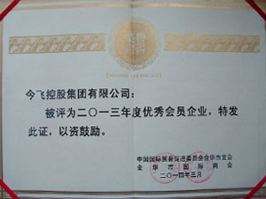 今飞控股-浙江省汽摩配行业商会第四届理事会副会长单位