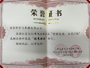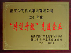 今飞车圈-浙江省自行车电动车行业“宣传先进、示范引领”选树活动中荣获优秀企业称号