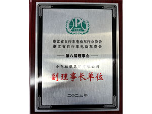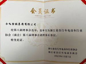 今飞控股-浙江省自行车电动车行业协会(商会)第八届理事会副理事长单位