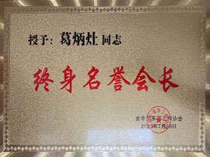 葛炳灶先生荣获金华市表面工程协会终身名誉会长