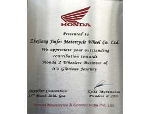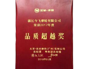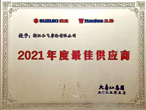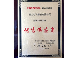 今飞摩轮-荣获2023年度新大洲本田摩托有限公司优秀供应商