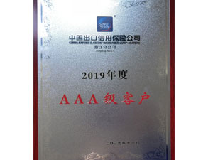 中国出口信用保险公司浙江分公司2019年度AAA级客户