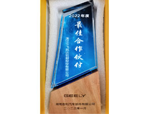 今飞凯达-吉利汽车湘潭公司2022年度最佳合作伙伴(奖杯)