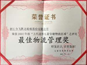 今飞凯达-荣获2022年度“上汽通用五菱宝骏物流区域”之评比最佳物流管理奖