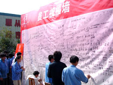 员工在祝福墙上写下对公司的生日祝福