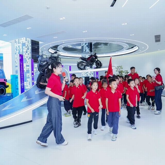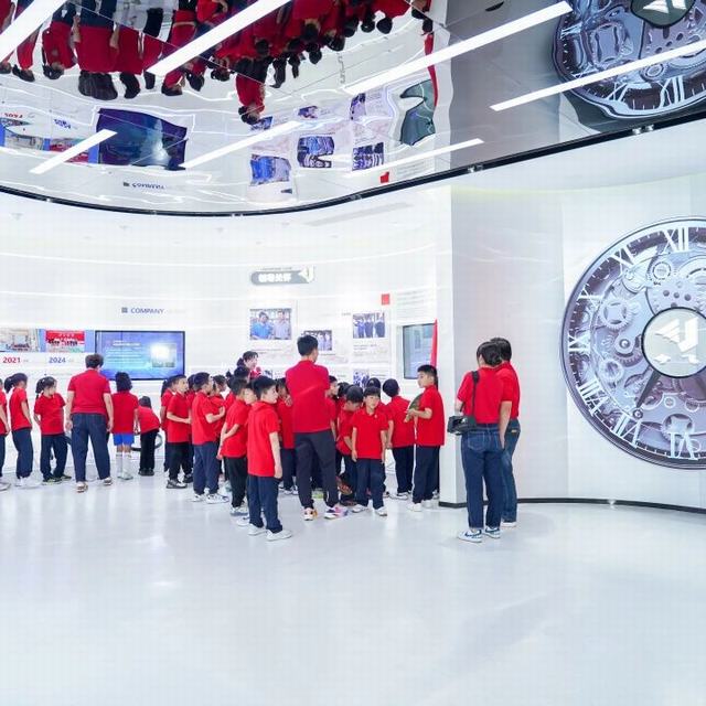 接着,葛总带领孩子们来到公司展厅,向孩子们介绍了今飞的发展历史,通过一幅幅珍贵的历史照片和实物展示,诉说着今飞历经的风雨兼程和取得的辉煌成就。从1959年的农业机械厂到1996年成立今飞机械集团有限公司,再从1998年的企业成功改制到2017年深交所成功挂牌上市。现在的今飞经过60多年的风雨,已经成为一个跨区域的制造业企业集团。参观的孩子们认真地听着葛总的介绍,驻足今飞发展中的各阶段产品,热烈地讨论着,并在展厅互动区亲自体验了汽车轮毂改装的乐趣。