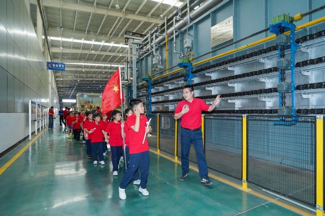 为更好地让新一代小学生感受工业科技的魅力,学习实业人“实业强国”砥砺奋发的精神,5月13日,今飞凯达轮毂智能工厂迎来了金华师范附属小学40余名师生莅临现场开展校企共建活动。集团公司副总裁冯红、今飞凯达副总经理兼董事会秘书葛茜芸、工会副主席孙蓓等热情接待了孩子们。