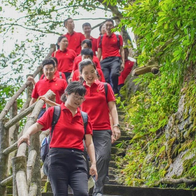 雨后的牛头山,远山含黛,近岭浮青,犹如一幅水墨丹青。密林深秀,光影斑驳,山风送来徐徐清凉。翻开浙江省党史,牛头山的武装游击战给国民党统治当局沉痛打击。忆苦思甜,不忘先烈,重走红军路,今飞党员队伍如一条跃动的红色脉搏,向着海拔1560米的峰顶进发。淋漓汗水映照担当,铿锵脚步丈量信念,登顶的每一步都印证着今飞党员队伍“奋进同行”的信念与力量,彰显党员在困难面前挺膺在前、带动全员的标杆力量。