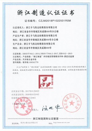 今飞控股集团始终视产品质量为生命, 以体系为依托,实现产品零缺陷,逐步确立了“今飞”铝合金车轮国际品牌地位。
